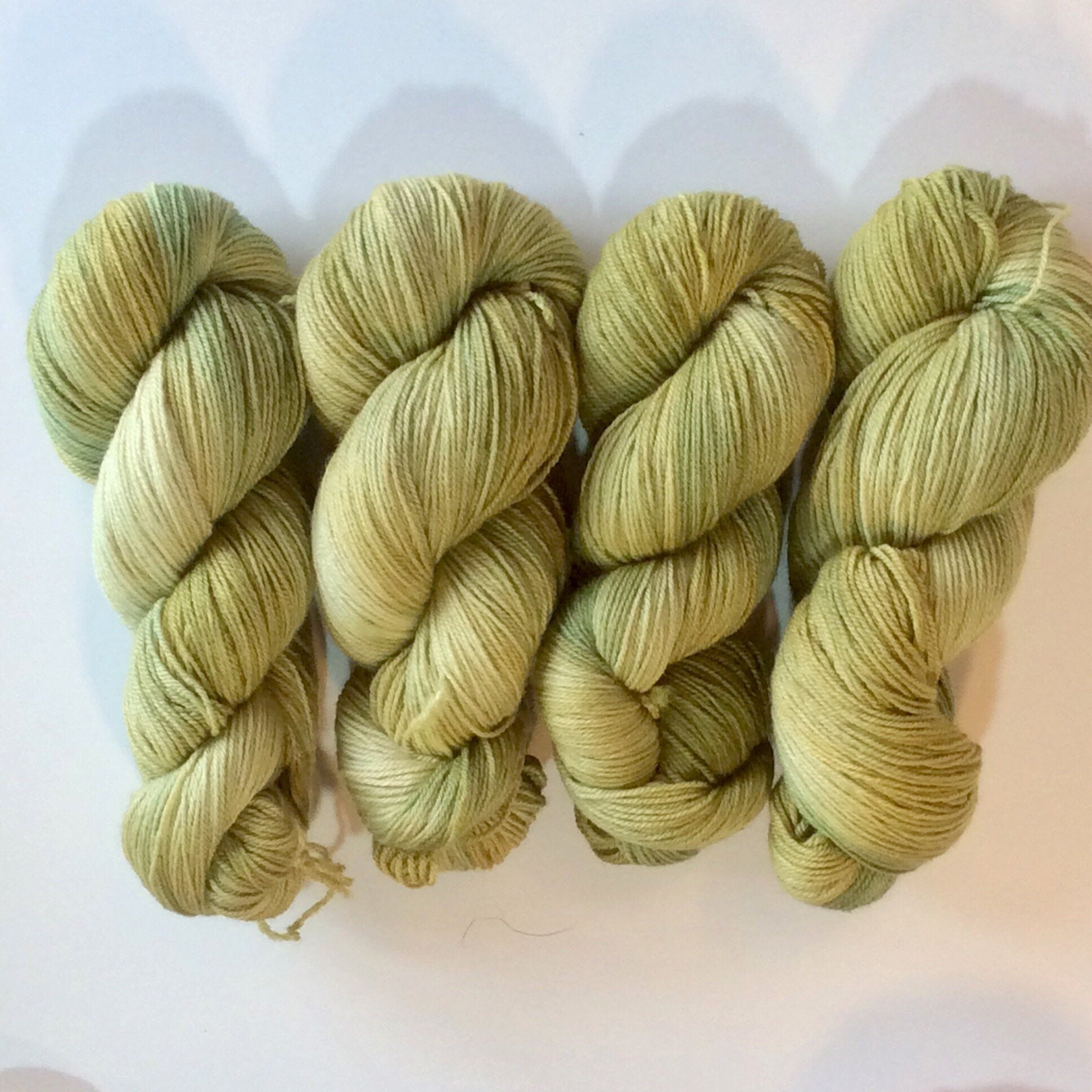 Avocado Season is a gorgeous tonal buttery green, just like a perfectly ripe avocado. To be honest, I thought this colour was a dud when it was in the pot.. it looked horrible!..but finished and dried I absolutely love it. It goes really beautifully with Bosom Buddies, and with Honey, Pink Pearl and even Lavenders Blue. It would make a beautiful cardigan, or light jumper like a Tegna or a floozy, or would look stunning combined in a stripe with one of my other colourways on this base in a LayerCake or Timely cardigan. This yarn has a faint fuzziness to it and will knit up beautifully soft.
